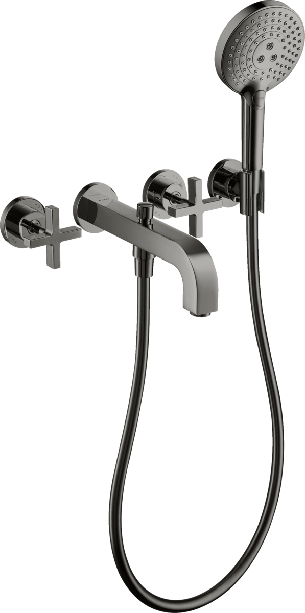 AXOR Citterio 3-otworowa bateria wannowa z uchwytami krzyżowymi i rozetami, ścienna, podtynkowa czarny chrom polerowany 39447330