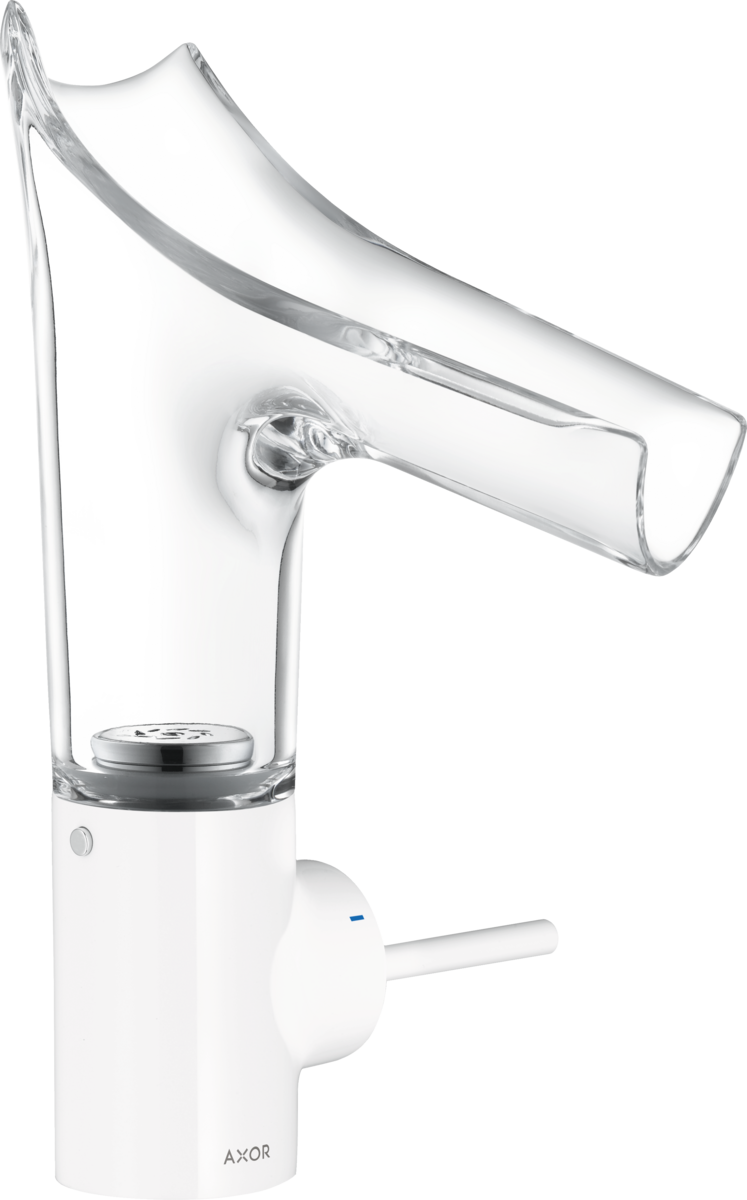 AXOR Starck V Jednouchwytowa bateria umywalkowa 140 ze szklaną wylewką i niezamykanym kompletem odpływowym biały 12112450