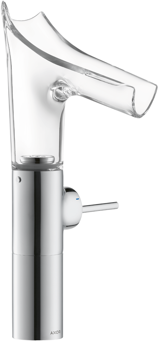AXOR Starck V Jednouchwytowa bateria umywalkowa 220 do umywalek nablatowych ze szklaną wylewką i niezamykanym kompletem odpływowym chrom 12114000