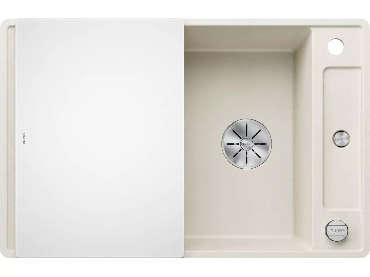 BLANCO Zlewozmywak AXIA III 45 S-F Silgranit delikatny biały odwracalny, korek auto., InFino, deska szkło białe 527037