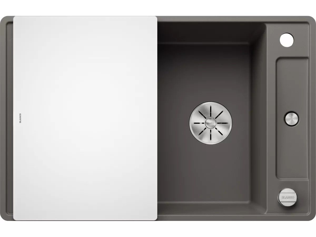 BLANCO Zlewozmywak AXIA III 45 S-F Silgranit wulkaniczny szary odwracalny, korek auto., InFino, deska szkło białe 527220
