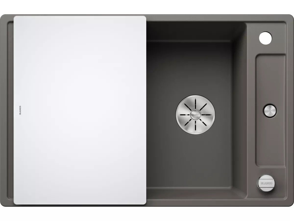 BLANCO Zlewozmywak AXIA III 45 S Silgranit wulkaniczny szary odwracalny, korek auto., InFino, deska szkło białe 527218
