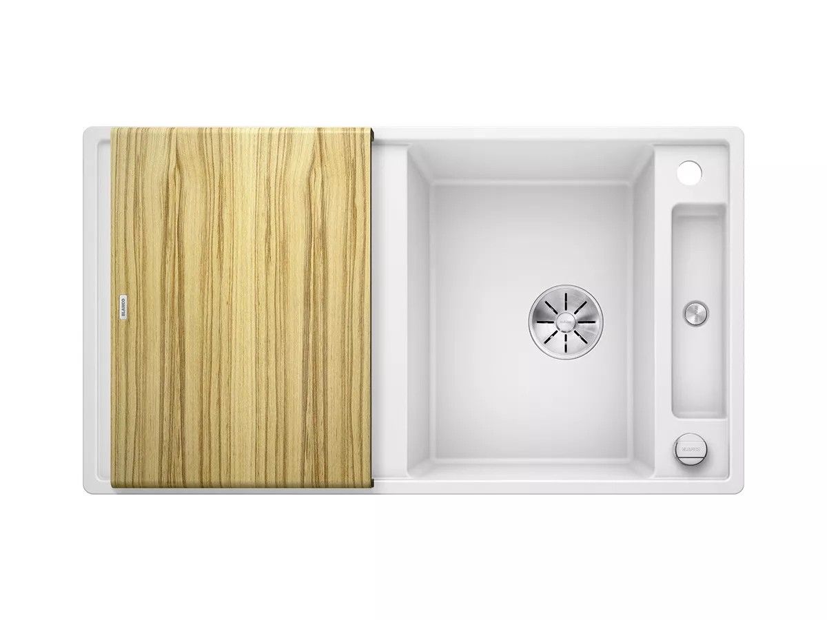 BLANCO AXIA III 5 S Silgranit zlewozmywak 91,5x51 cm odwracalny, korek auto., InFino, deska jesionowa, biały 523209