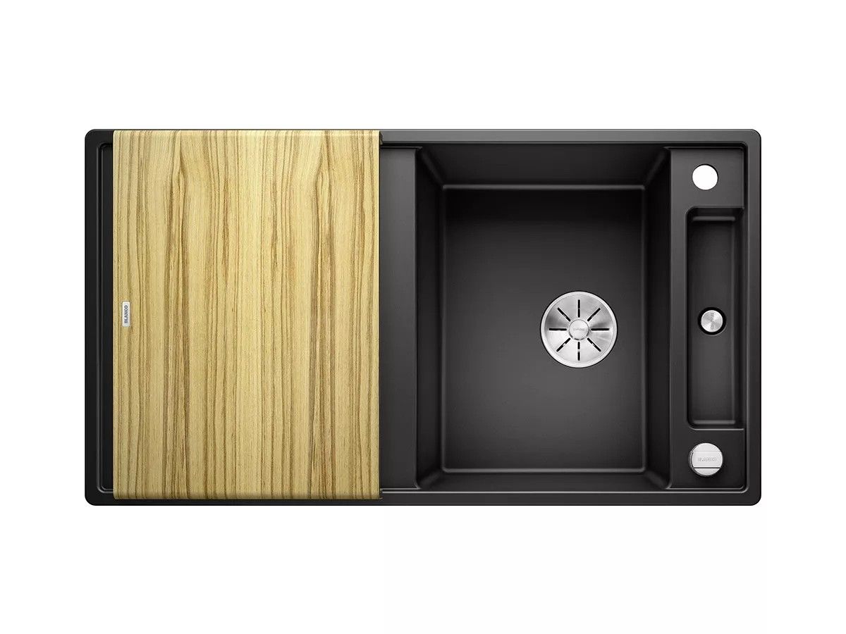 BLANCO AXIA III 5 S Silgranit zlewozmywak 91,5x51 cm odwracalny, korek auto., InFino, deska jesionowa czarny 525845