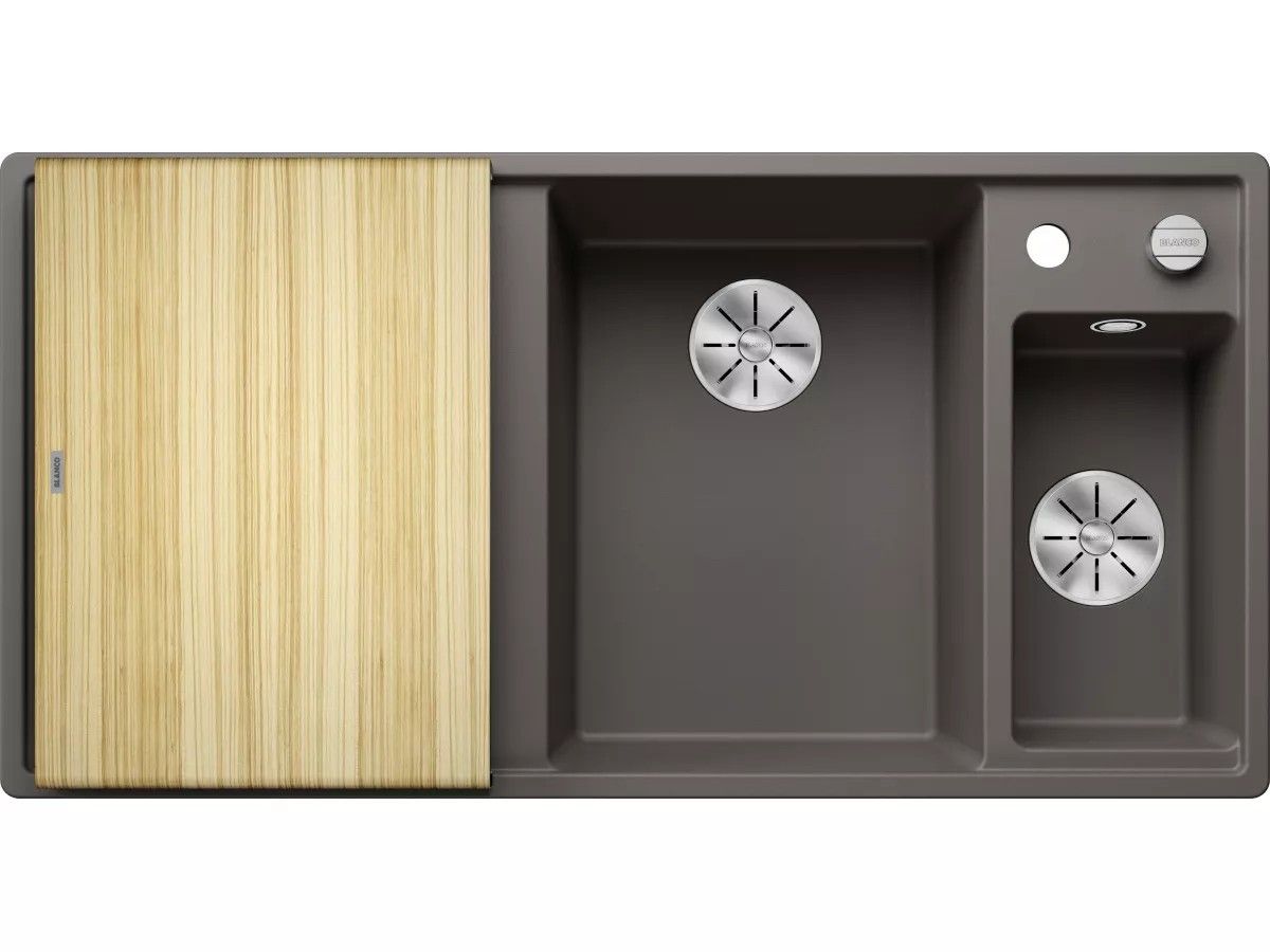 BLANCO AXIA III 6 S Silgranit Zlewozmywak 100x51 cm komora prawa, korek auto., InFino, deska jesionowa, odsączarka stalowa wulkaniczny szary 527229