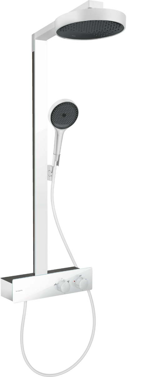Najważniejsze cechy i zalety Hansgrohe Rainfinity Komplet prysznicowy 250 1jet EcoSmart z ShowerTablet 350 biały mat 28742700
