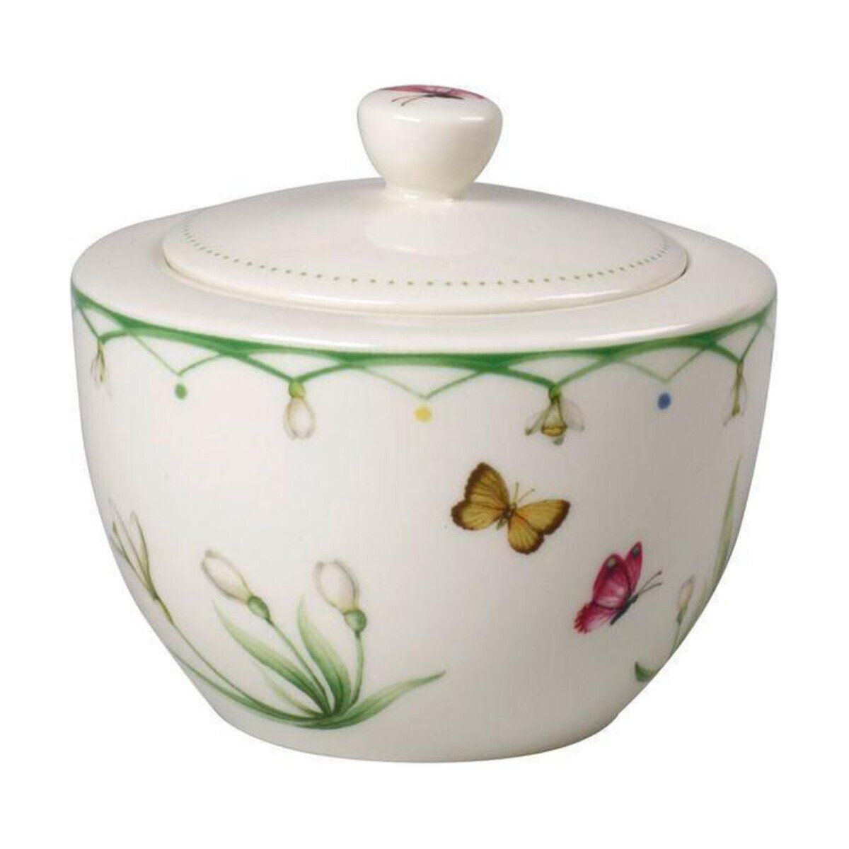 Cukiernica Villeroy&Boch Kolorowa Wiosna 0,24 l to elegancki dodatek do każdego stołu, łączący w sobie funkcjonalność i wyjątkowy design. Wykonana z wysokiej jakości porcelany, cukiernica cechuje się nie tylko trwałością, ale także wspaniałym wykończeniem, które zachwyca gości. Dzięki oryginalnemu wzornictwu inspirowanemu naturą, idealnie wpisuje się w tematykę wiosenną, wprowadzając do wnętrza radosny nastrój.