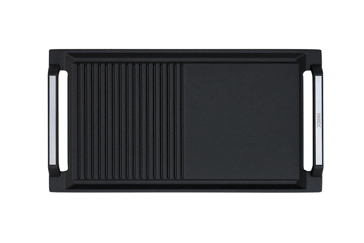 Grill żeliwny BERG BRGRILLPANDwustronny grill żeliwny marki BERG to idealne rozwiązanie dla miłośników zdrowego i wygodnego gotowania. Jedna strona jest ryflowana – doskonała do grillowania mięsa, ryb czy warzyw, druga gładka – świetna do smażenia lub serwowania potraw.